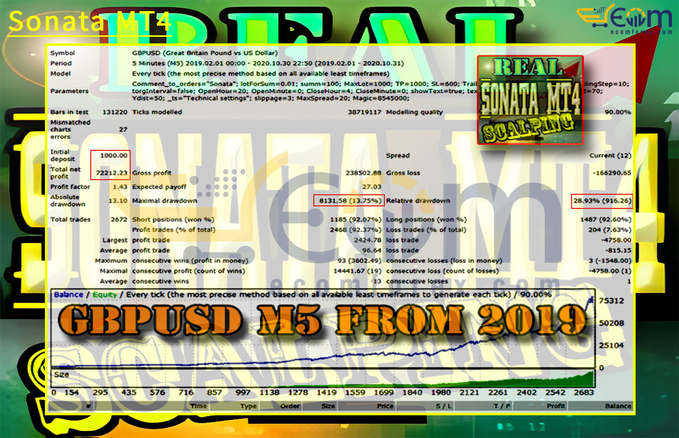 The Sonata EA MT4 has demonstrated impressive profitability in backtesting, showcasing its ability to generate steady returns with consistent trade execution. Over the 1.5-year testing period (2019–2020, GBPUSD, M5 timeframe), the system achieved strong growth while maintaining manageable drawdowns, making it a reliable choice for traders seeking sustainable performance.