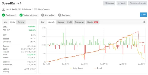 The SpeedRun EA is a computerized trading system created specifically for the MetaTrader 4 platform, recognized as one of the leading platforms for Forex trading. This EA aims to assist traders by autonomously carrying out trades based on a collection of programmed strategies and parameters.