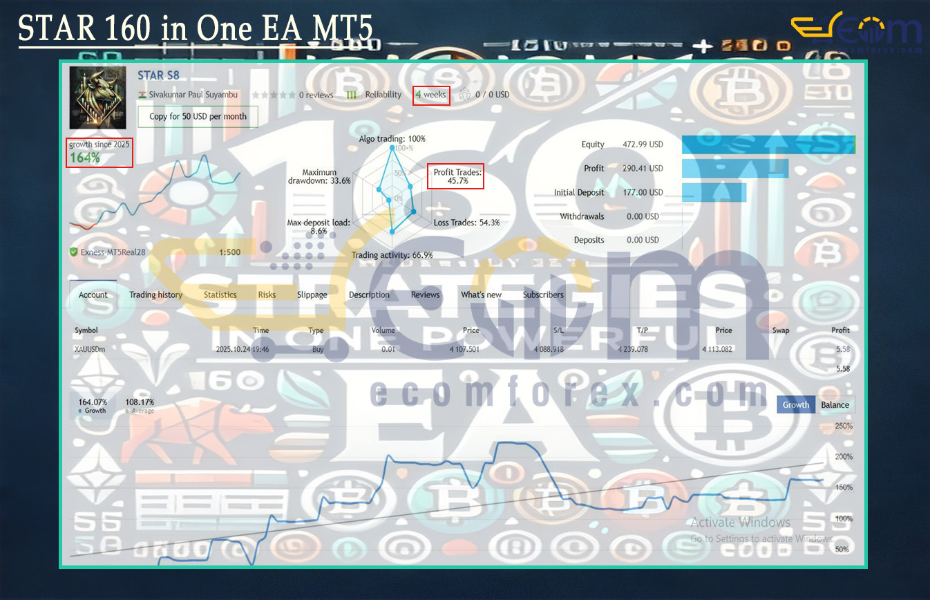 STAR 160 in One EA Fires on All Cylinders — Turning $177 into +164% in Just 4 Weeks of Real Trading on XAUUSD & Forex Pairs!