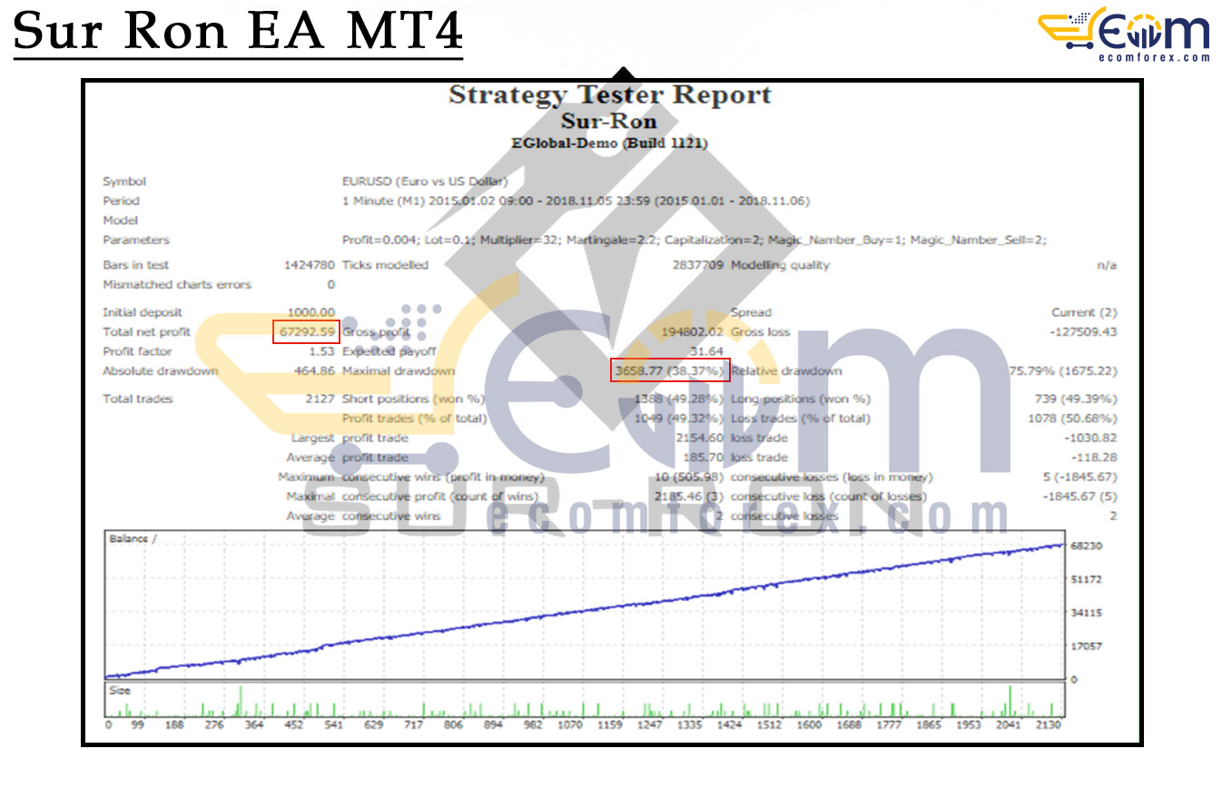 The Sur Ron EA MT4 delivered outstanding profitability over a 36-month backtest on the EURUSD pair, demonstrating strong consistency and reliable recovery even on the highly sensitive 1-minute timeframe. The advisor maintained stable performance throughout varying market conditions, showcasing its capability to generate high returns while managing risk effectively.