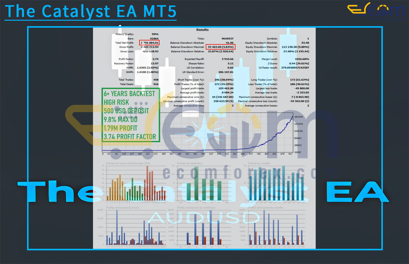 With over 20 years of trading experience, I can confidently state that success in the Forex market doesn’t come from luck, but from strategy, risk management, and technology. The Catalyst EA MT5 is a clear example of this principle – an advanced Expert Advisor (EA) designed specifically for the AUDUSD pair on the H1 timeframe.