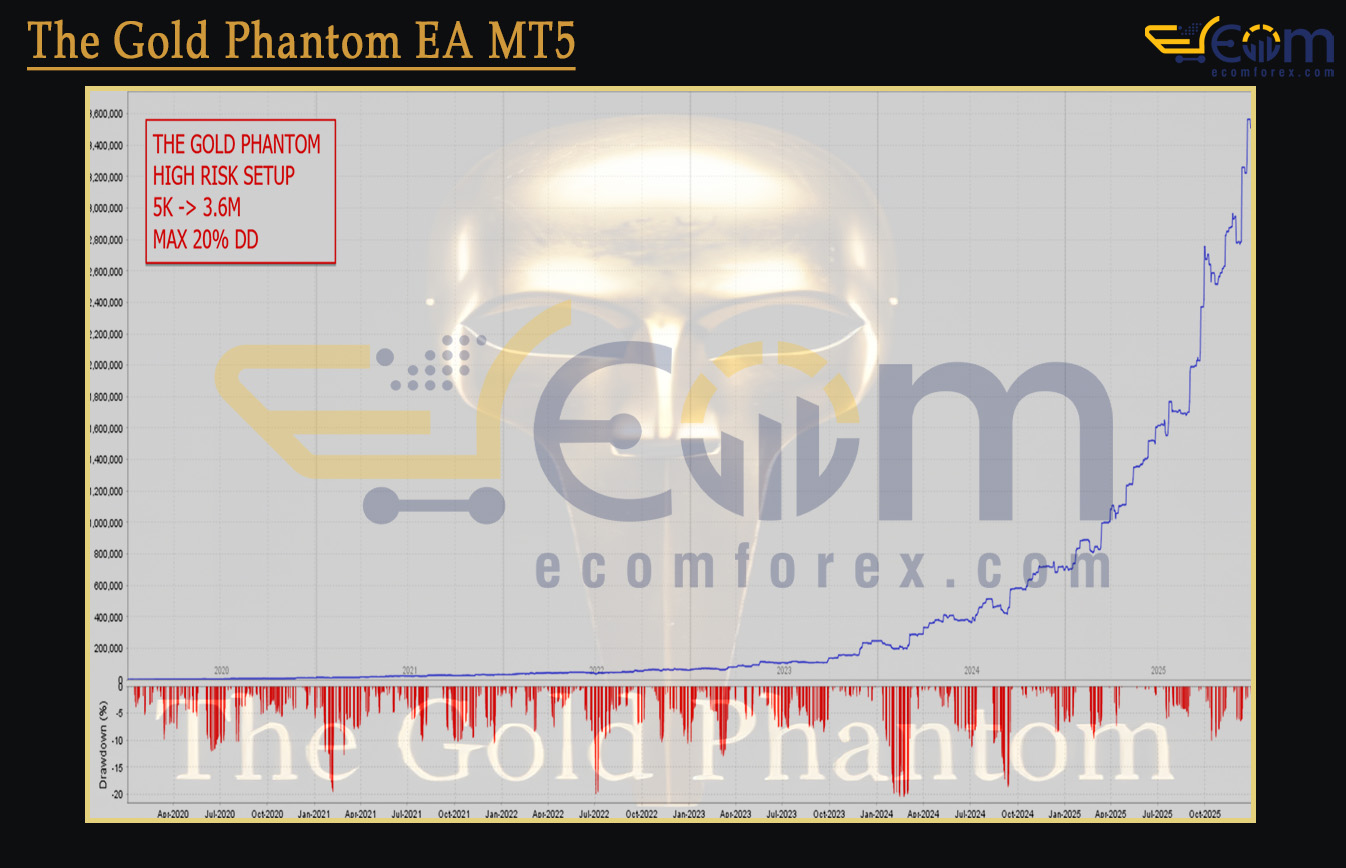 The Gold Phantom EA has consistently delivered exceptional long-term profitability, proving its mastery over XAUUSD (Gold) across diverse market cycles through rigorous 5-year backtesting (2020–2025).