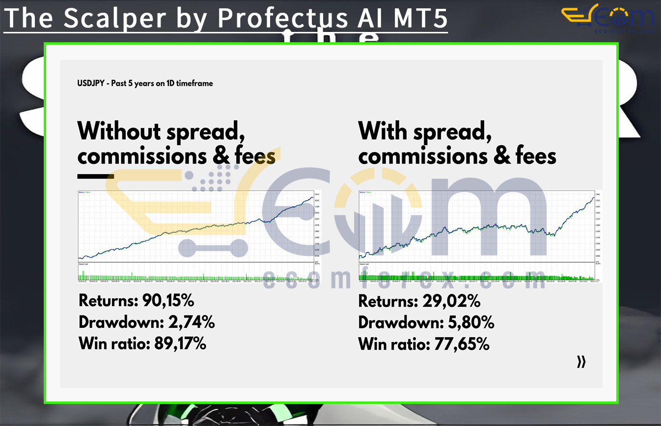The Scalper by Profectus AI MT5 has undergone rigorous testing at various levels but still gives a high winning rate along with stable profitability.