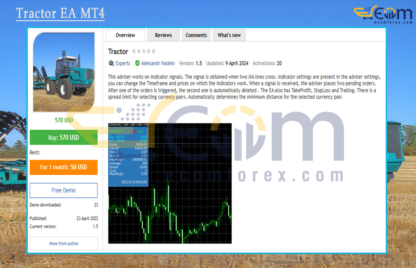 After 20 years in the forex market, I recommend Tractor EA MT4 to traders who: