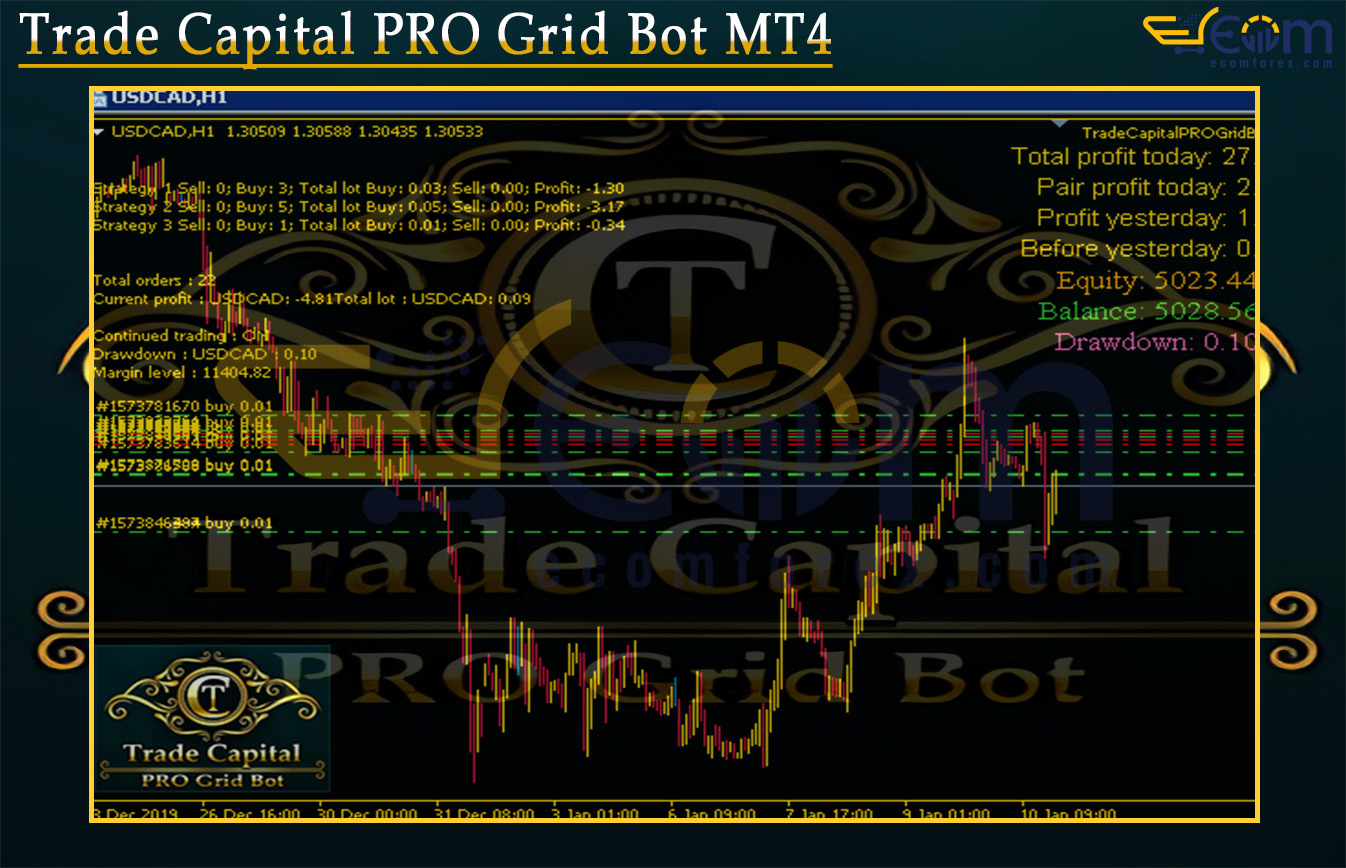 Trade Capital PRO Grid Bot MT4 is a multi-strategy automated trading system built to trade Forex markets using a structured approach to trend phase distribution. The Expert Advisor (EA) integrates three independent strategies, each operating on its own timeframe while aligning with an overall trend filter to ensure high-probability entries.