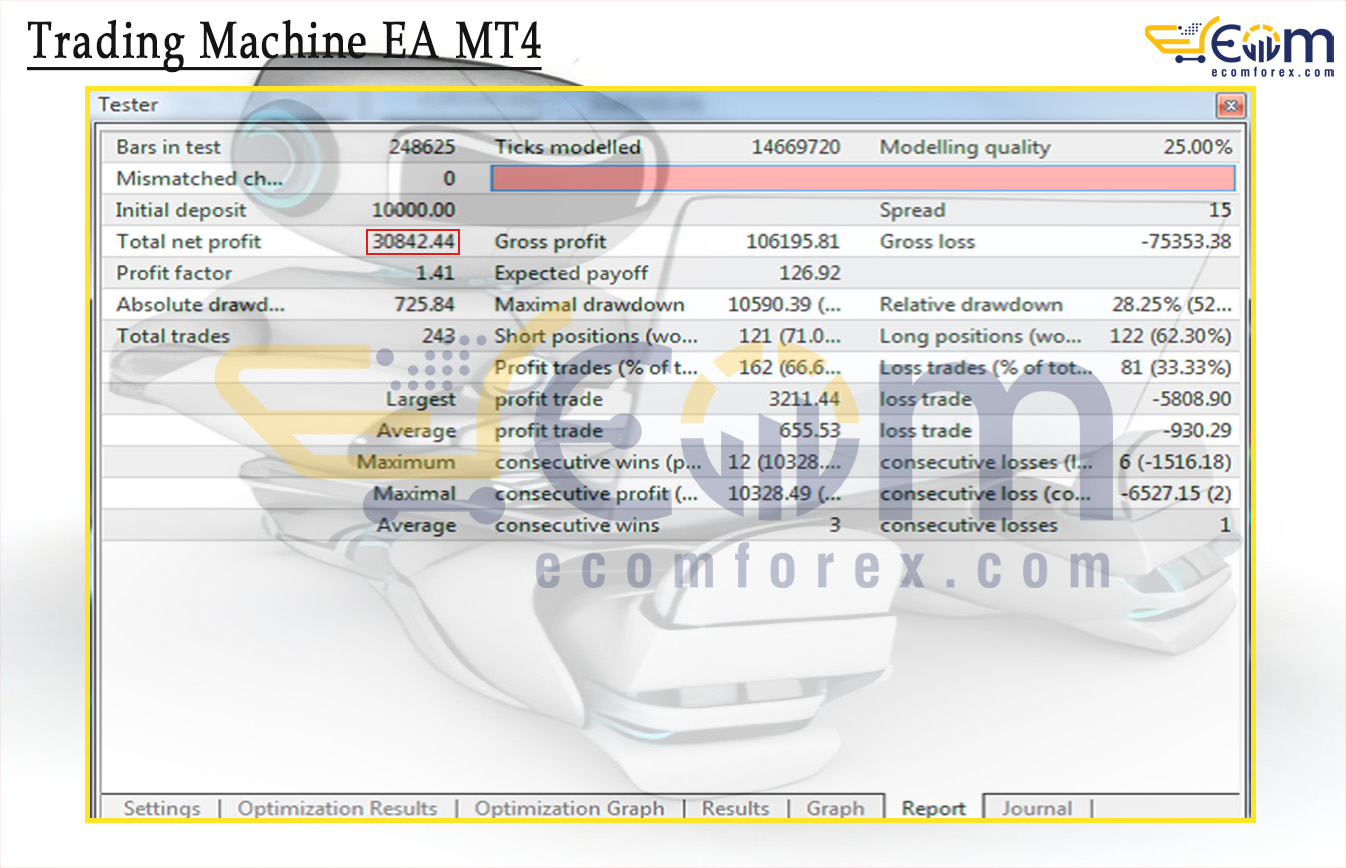 Trading Machine EA has showcased remarkable consistency and profitability across extensive multi-year reversion and historical backtesting periods. Powered by its adaptive neural network indicators and structured trend logic, this EA demonstrates strong market command — delivering high-probability entries, intelligent reversals, and steady capital growth while balancing aggression with built-in protections.