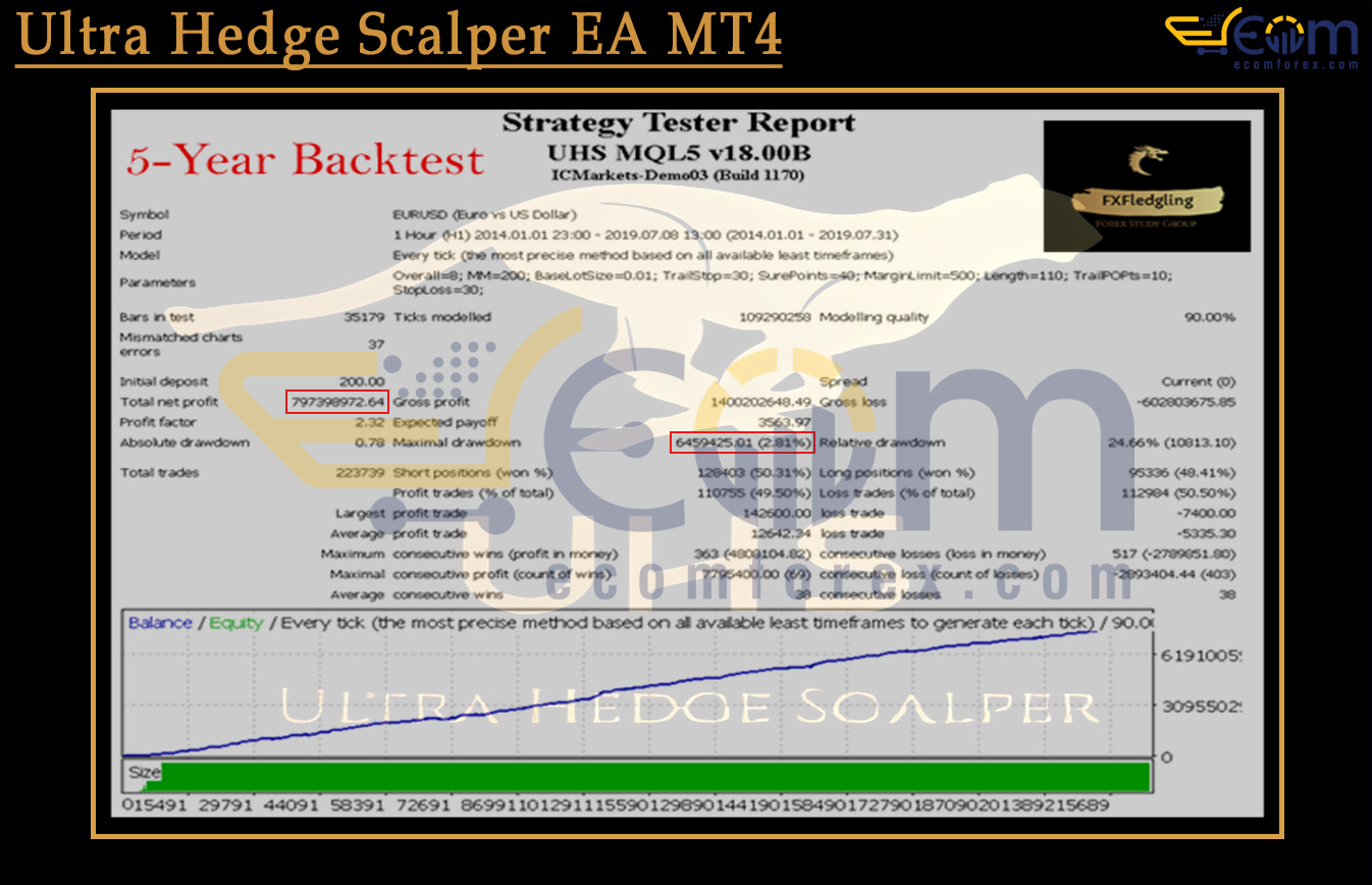 Ultra Hedge Scalper EA (EURUSD H1) has showcased outstanding profitability and long-term resilience throughout its 5-year backtest, confirming its ability to sustain consistent equity growth under various market conditions.