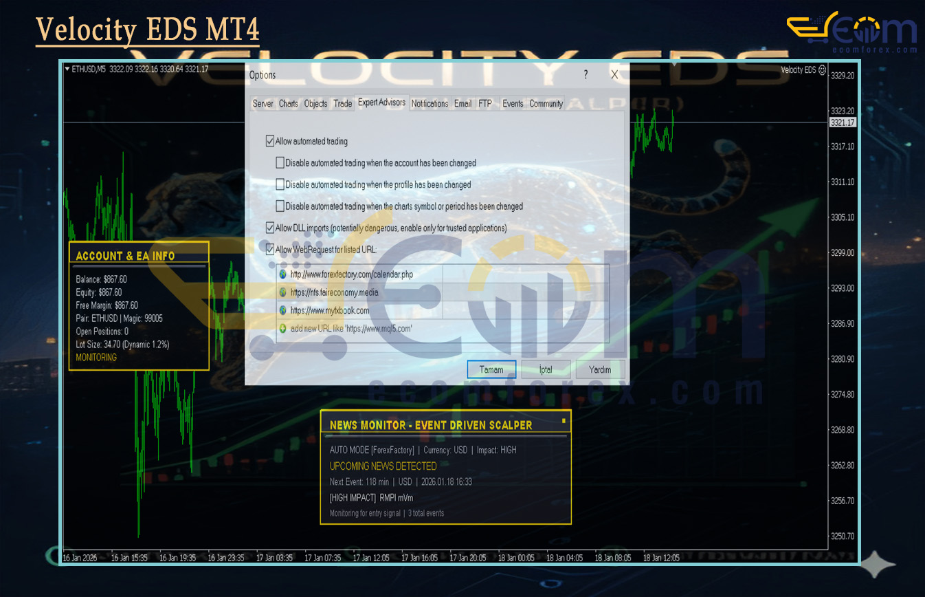 Reliable Execution: Built-in protections against common news-trading errors (slippage, requotes, freeze levels) ensure more consistent performance.
