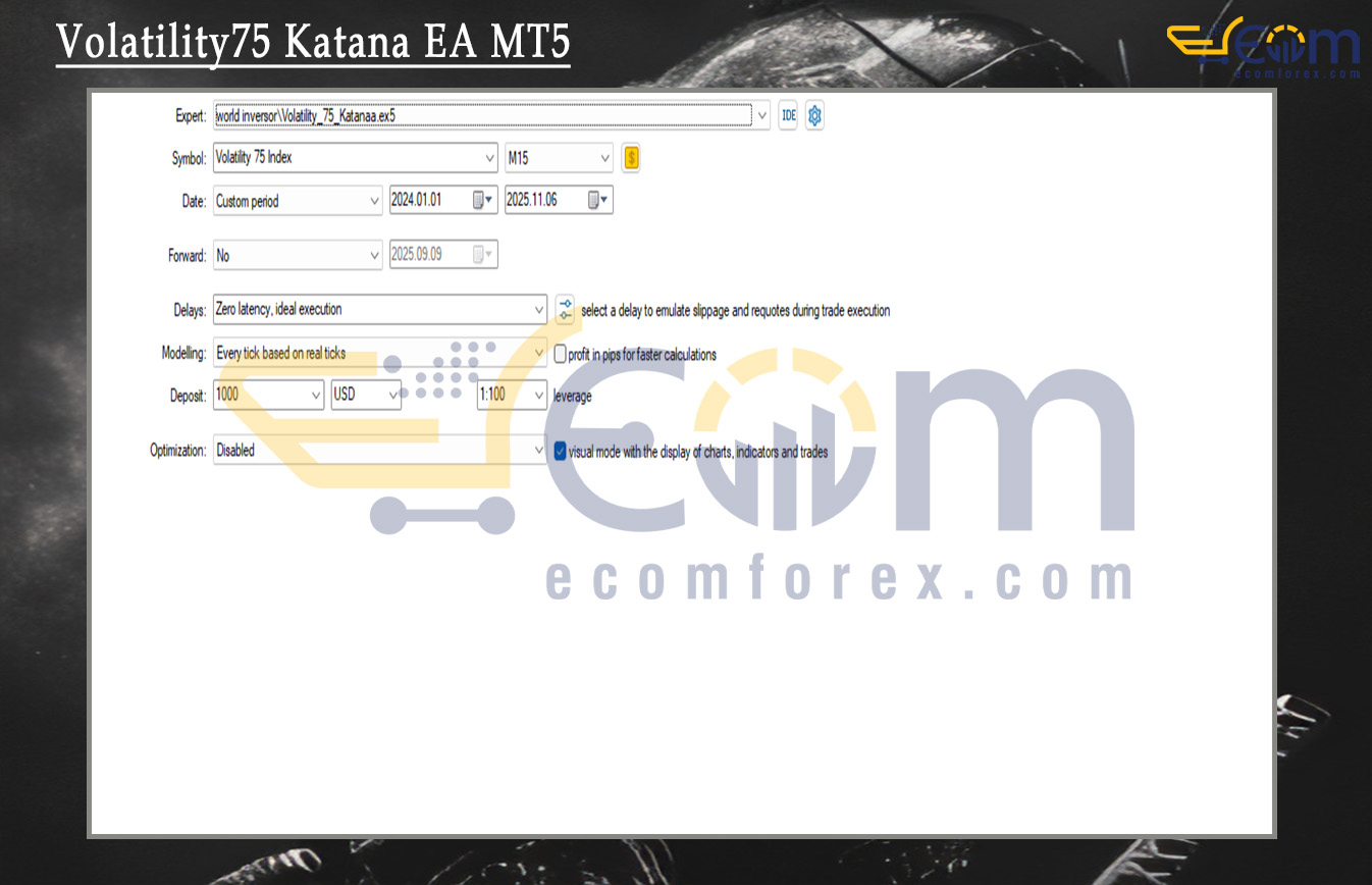With over 20 years of experience trading high-volatility synthetic indices on Deriv, I rate Volatility75 Katana EA MT5 as a highly specialized and well-optimized MT5 Expert Advisor (EA) designed exclusively for the Volatility 75 Index (V75). This EA uses a Bollinger Bands strategy carefully calibrated for the extreme volatility environment of the V75, aiming to capture large explosive movements effectively.