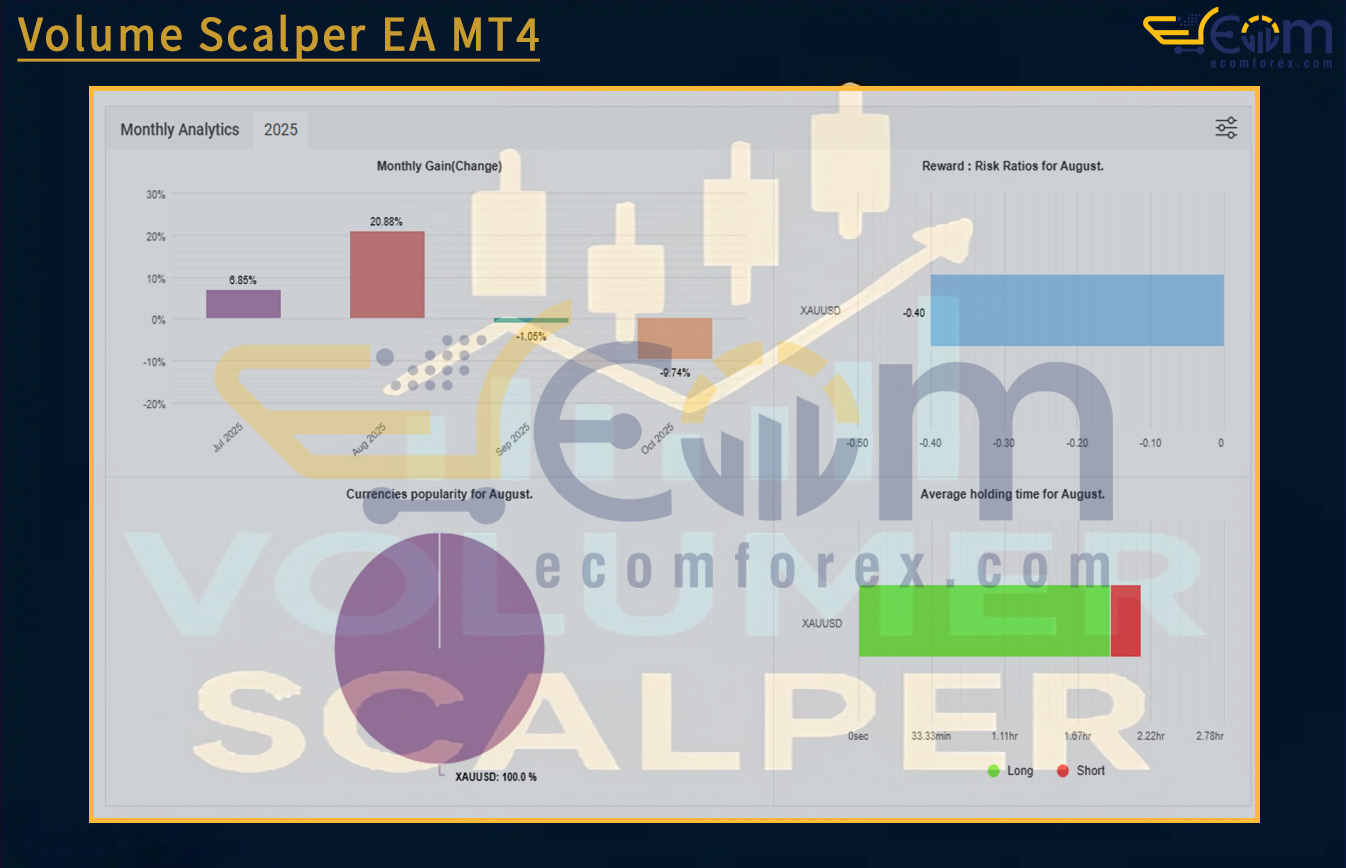 By combining volume-based breakout logic with volatility channel filtering and adaptive trade management, Volume Scalper EA captures short-term momentum with surgical accuracy while keeping risk exceptionally low. It’s the perfect blend of data science, risk control, and professional-grade execution — made for traders who understand that consistency is greater than luck.