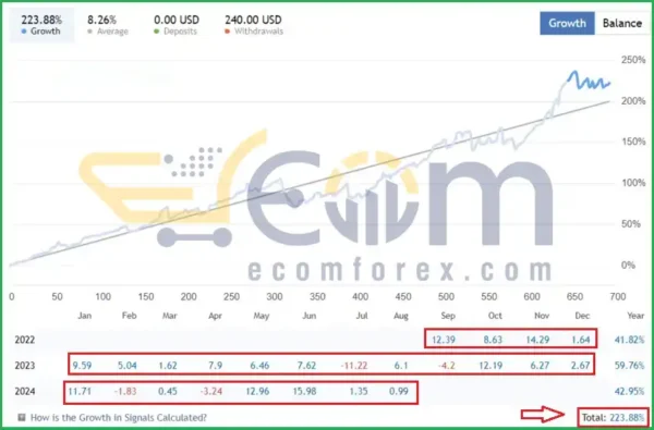 Growth since 2022 224% Profit $2193 in 100 Weeks Algo trading 100% Profit trades 92,8% Loss trades 7,2% Trading activity 4,3% Max deposit load 9,3% Maximum drawdown 18%