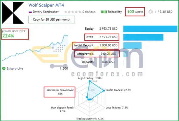 Wolf Scalper MT4 is an Expert Advisor (EA) crafted to specialize in trading currency pairs and is fine-tuned for trading EURUSD, USDJPY, and GBPUSD. The EA’s effectiveness has been confirmed through practical application, authenticated by FXBlue and Myfxbook.