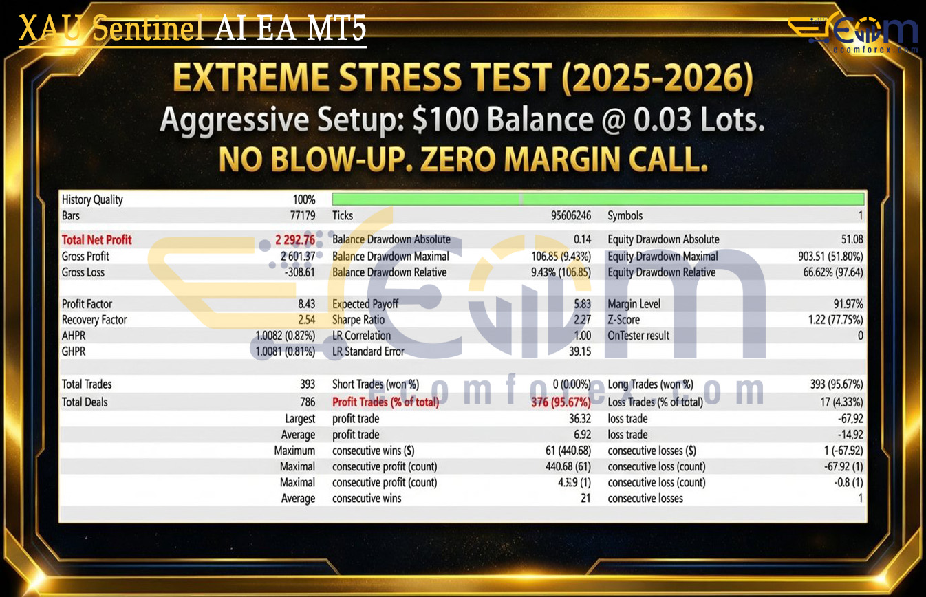 XAU Sentinel AI EA: Long-Term Backtest Mastery on Gold – From $100 to +2,292% Net Profit with Elite Risk Control