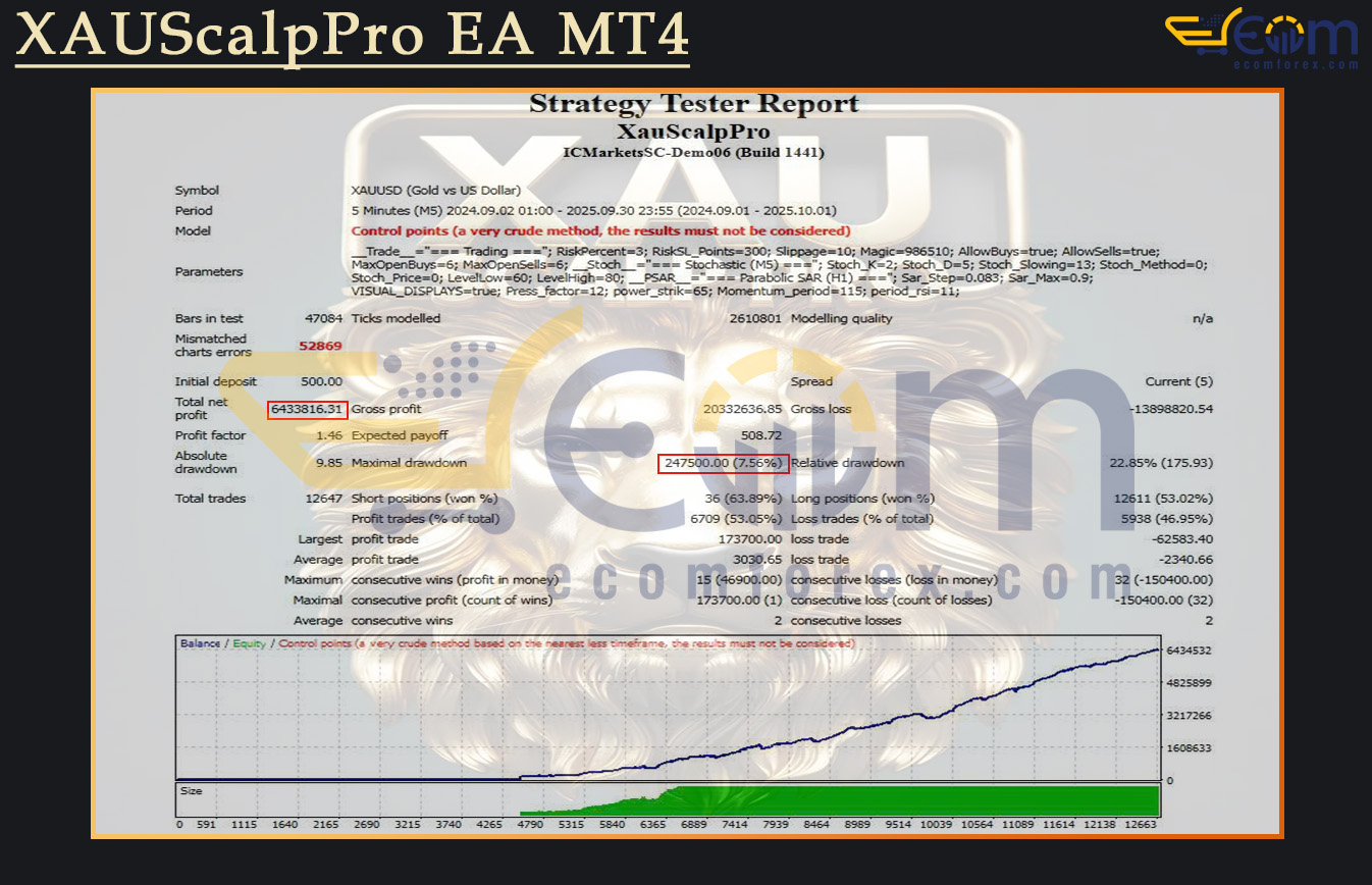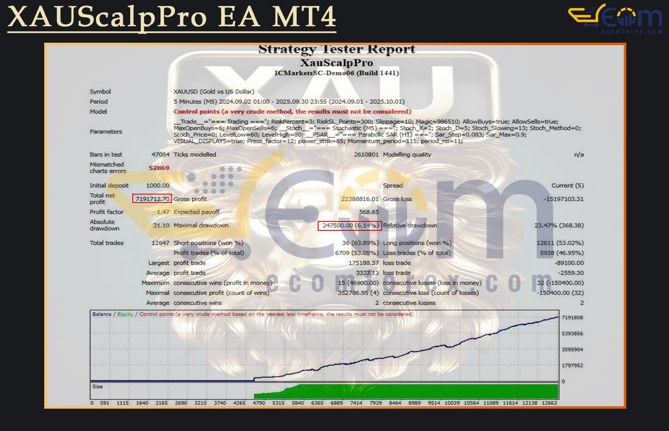 XAUScalpPro EA MT4 has showcased powerful short-term profitability and disciplined growth stability throughout its 1-year backtest (2024–2025) on the XAUUSD (Gold) pair.