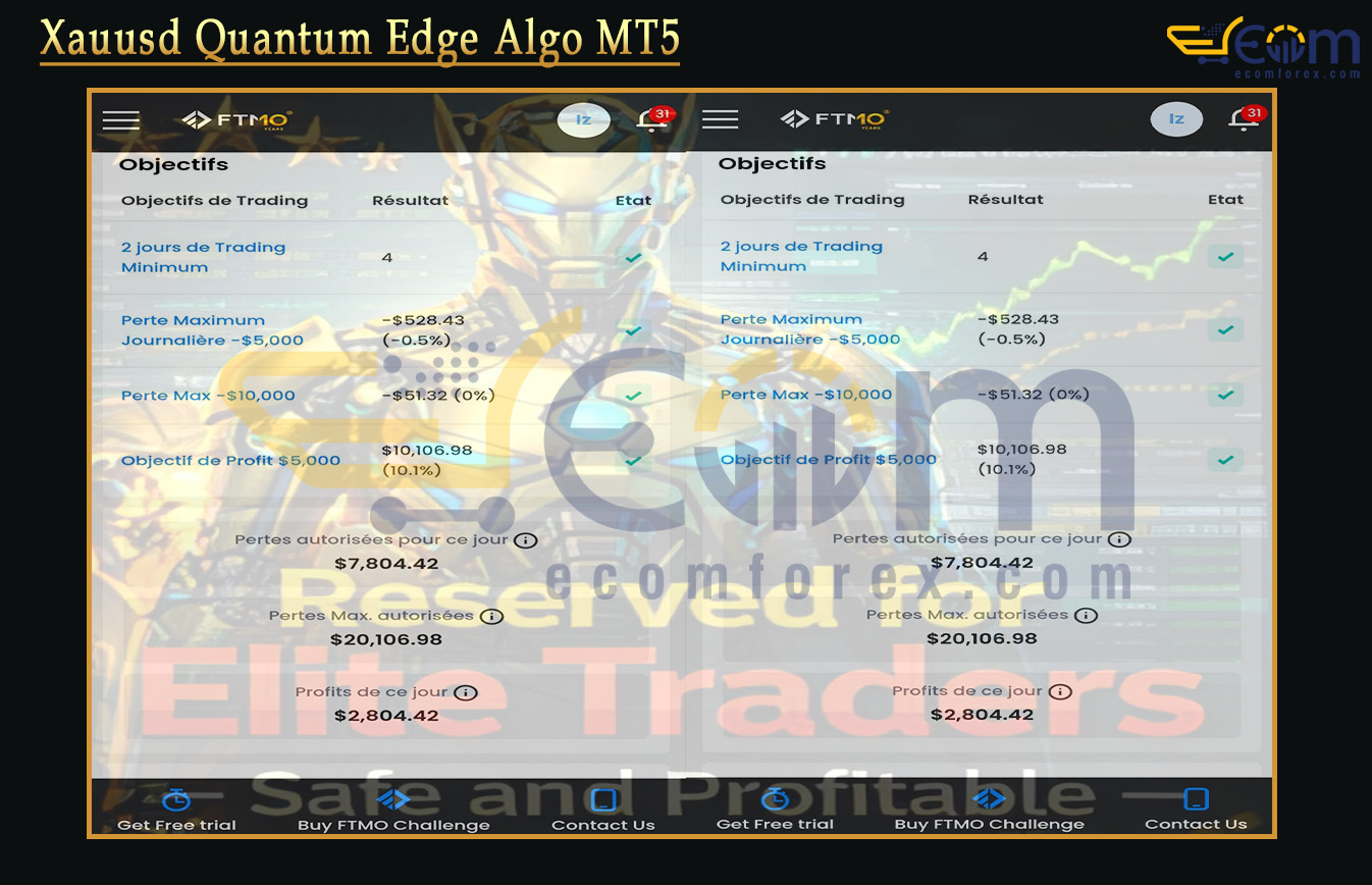 XAUUSD Quantum Edge Algo MT5 is a professional, high-precision Expert Advisor (EA) for MetaTrader 5 (MT5), specifically engineered for automated trading on XAUUSD (Gold).