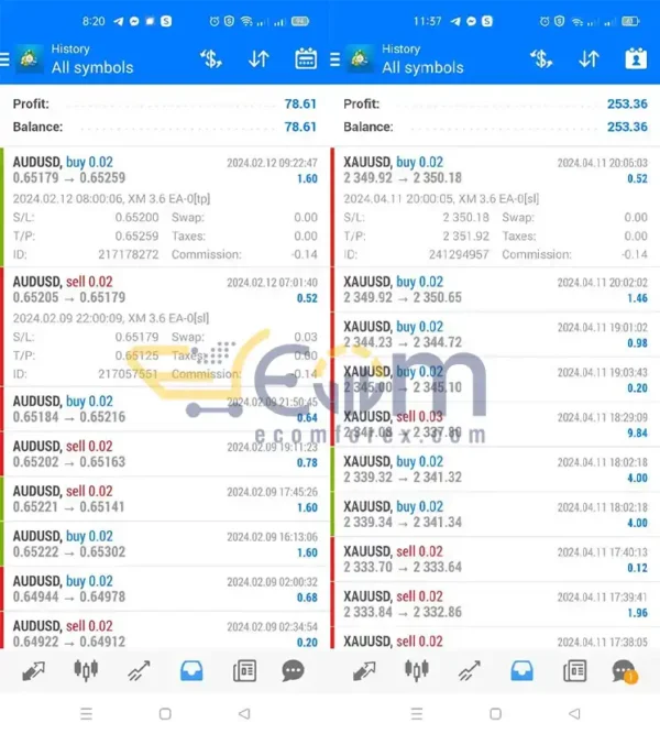 XM V3.6 EA MT4 is a sophisticated trading robot expertly crafted on the MetaTrader 4 (MT4) platform. EAs deliver automated trading solutions, enabling traders to carry out transactions based on established strategies. It demonstrates profitable outcomes on currency pairs including EURUSD, GBPUSD, USDJPY, AUDUSD, EURJPY, USDCHF, and GOLD.